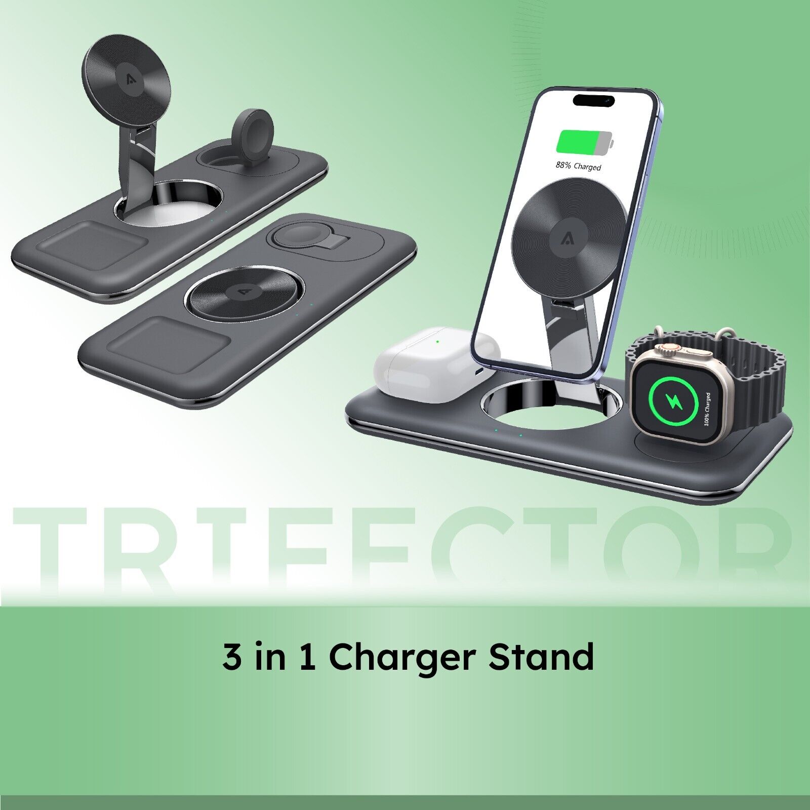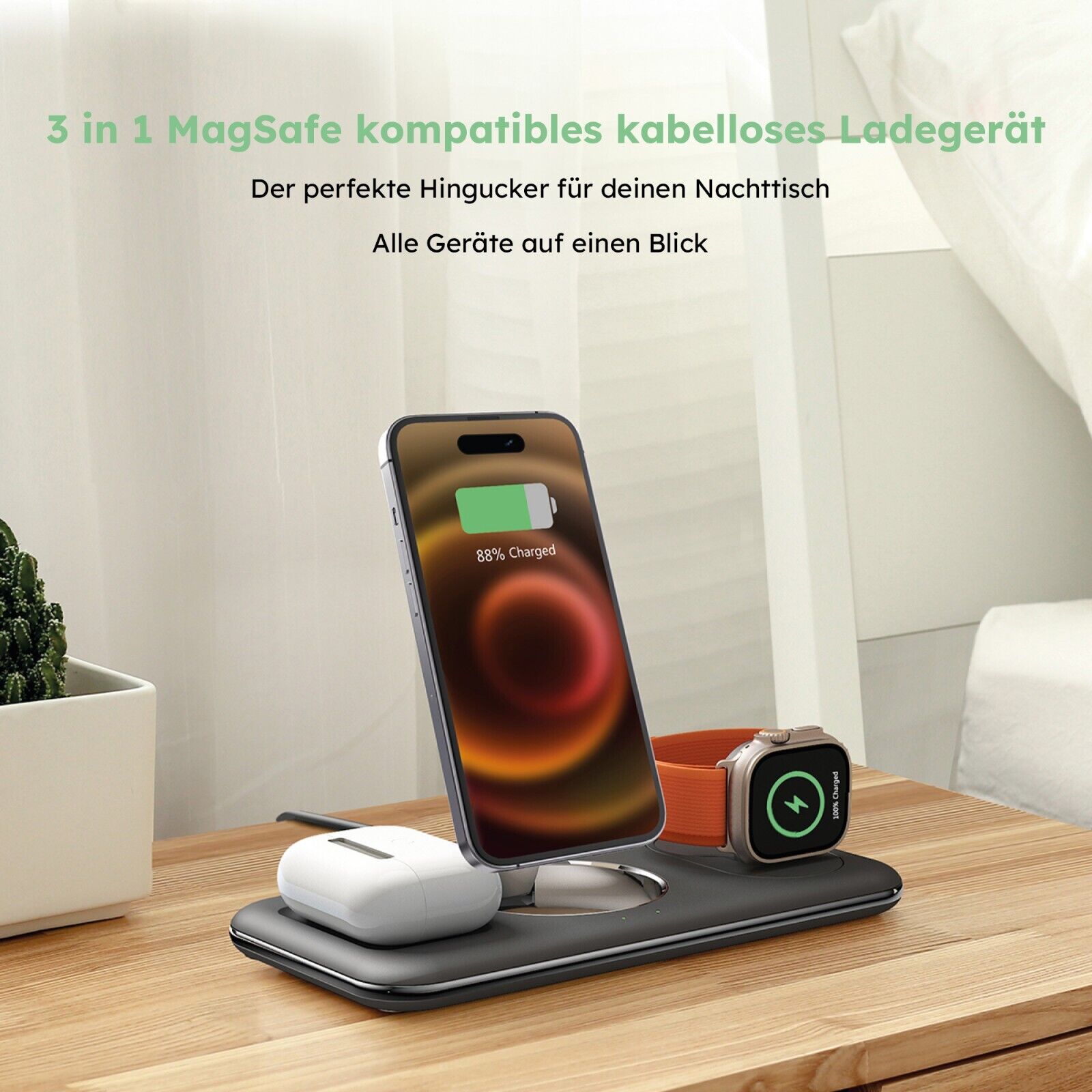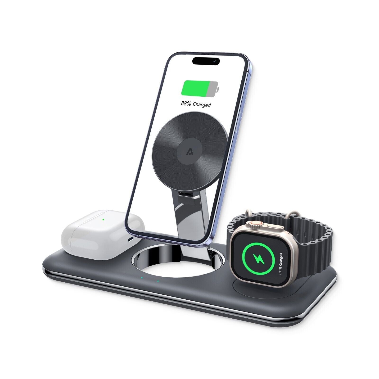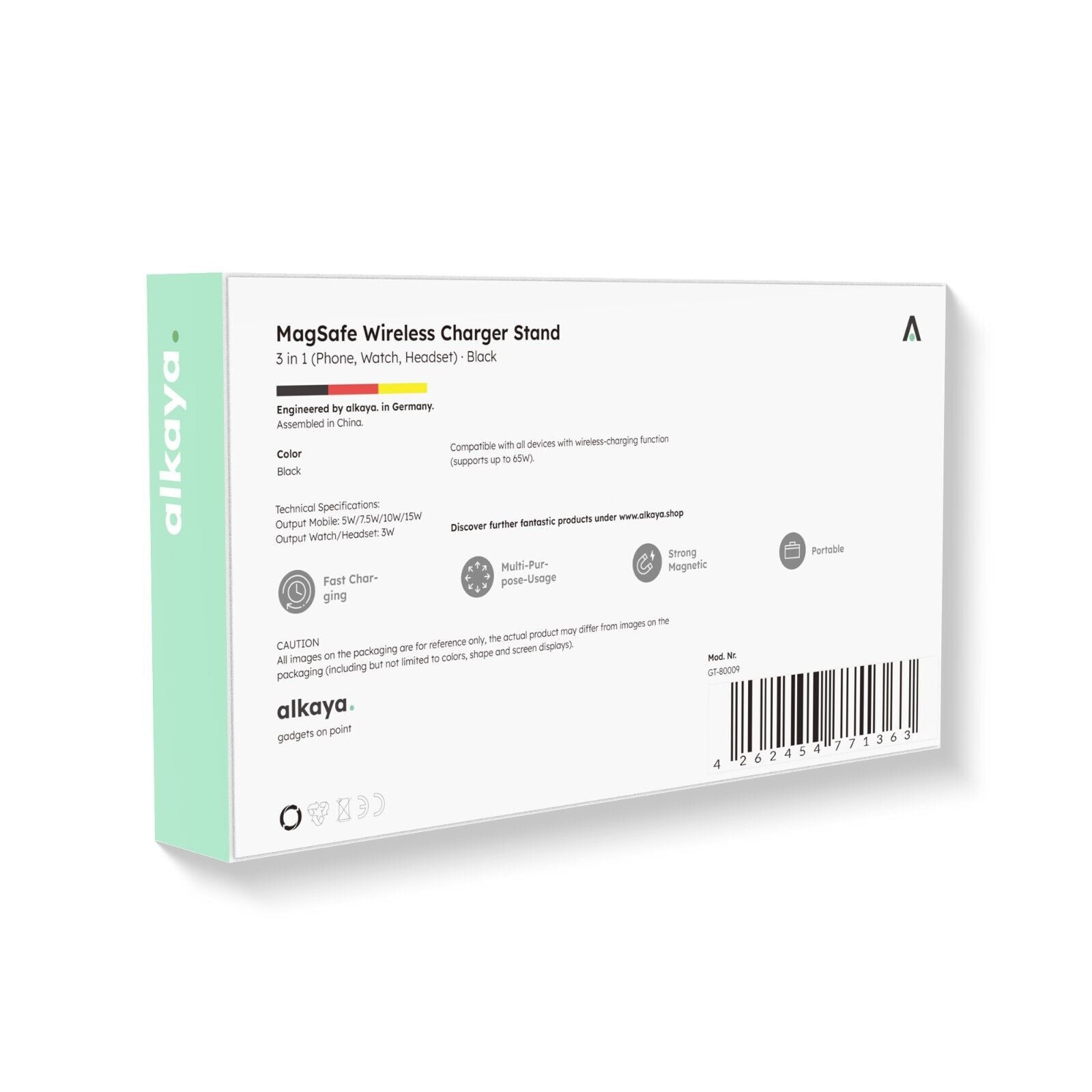 Gönnen Sie sich die Alkaya 3-in-1 Ladestation in Schwarz und genießen Sie die Freiheit des kabellosen Ladens!