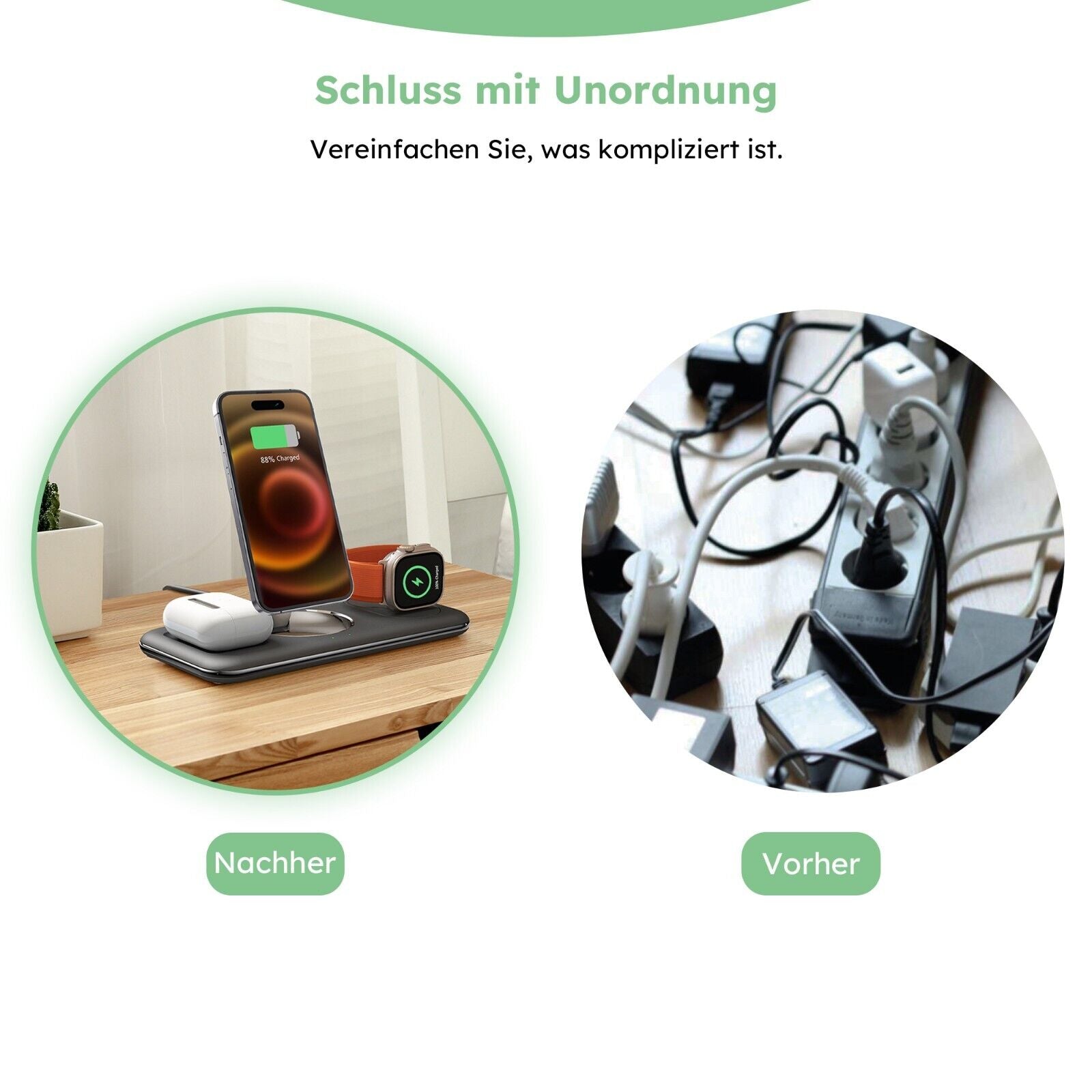 ✅ Drei Geräte gleichzeitig laden – Smartphone, Smartwatch und Kopfhörer